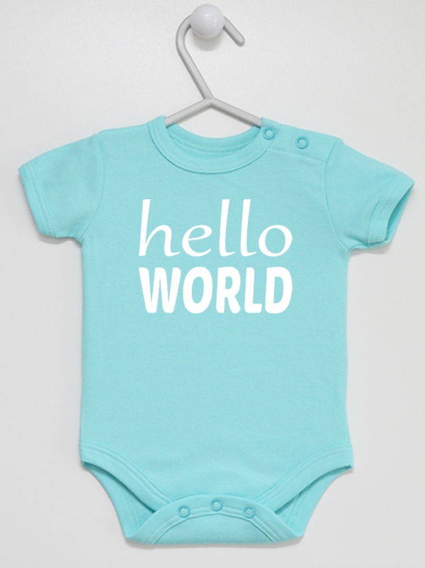 Urocze ubranko dla niemowląt z napisem „Hello World”.