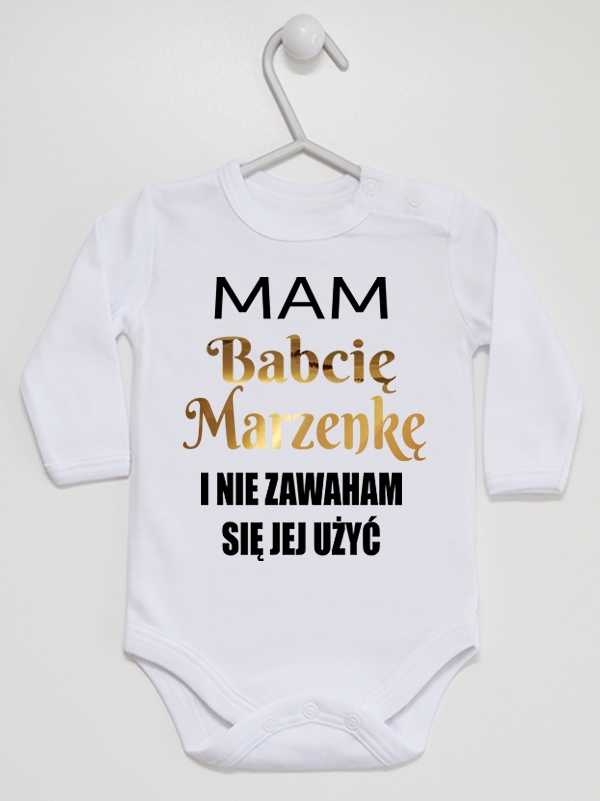 Urocze ubranko dla niemowląt z napisem „Mam Babcię Marzenkę”.