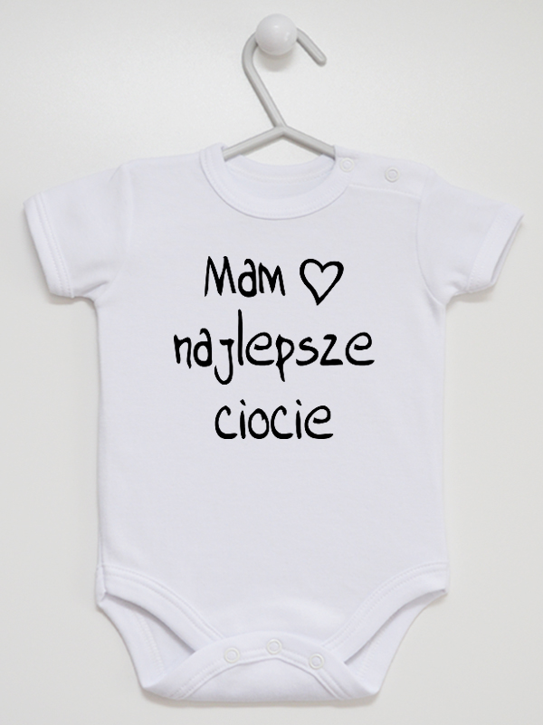 Śliczne body z uroczym nadrukiem Mam Najlepsze Ciocie z serduszkiem to idealny wybór dla każdego malucha. Dostępne w różnych kolorach i z krótkimi lub długimi rękawami, świetnie sprawdzi się zarówno dla chłopca, jak i dziewczynki.