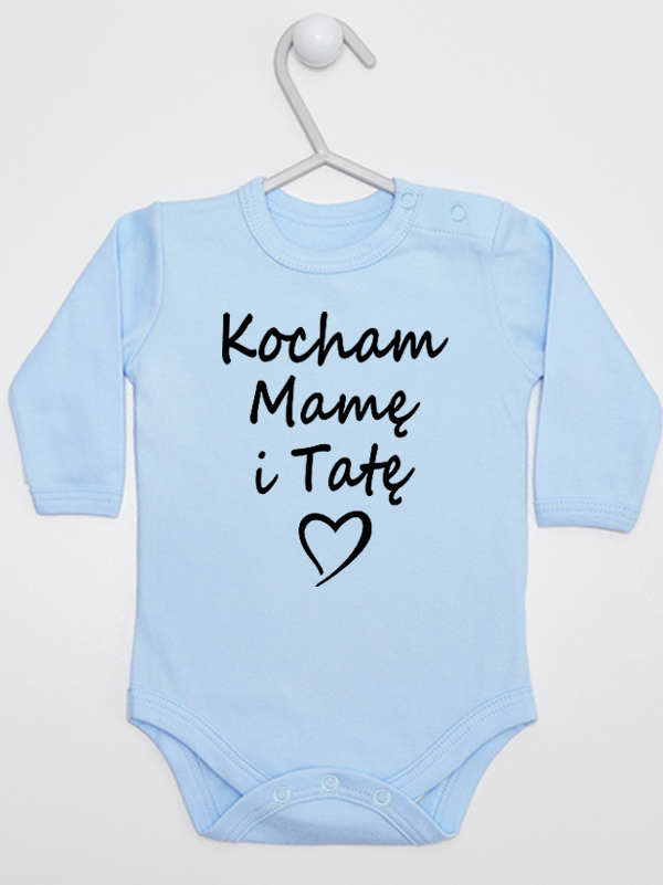 Body dziecięce zachwyci każdego rodzica i malucha dzięki urokliwemu nadrukowi Kocham Mamę i Tatę z serduszkiem. Dostępne z długim lub krótkim rękawem w różnorodnych kolorach.