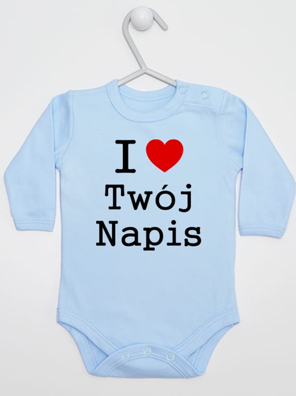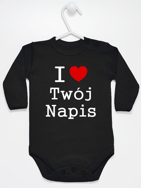 Body I Love z Twoim napisem i czerwonym sercem to idealny wybór, jak chcesz personalizowane ubranie. Możesz wpisać ciocie, wujka, siostrę, brata, imię, zwierzątko, masz możliwość wybrania.