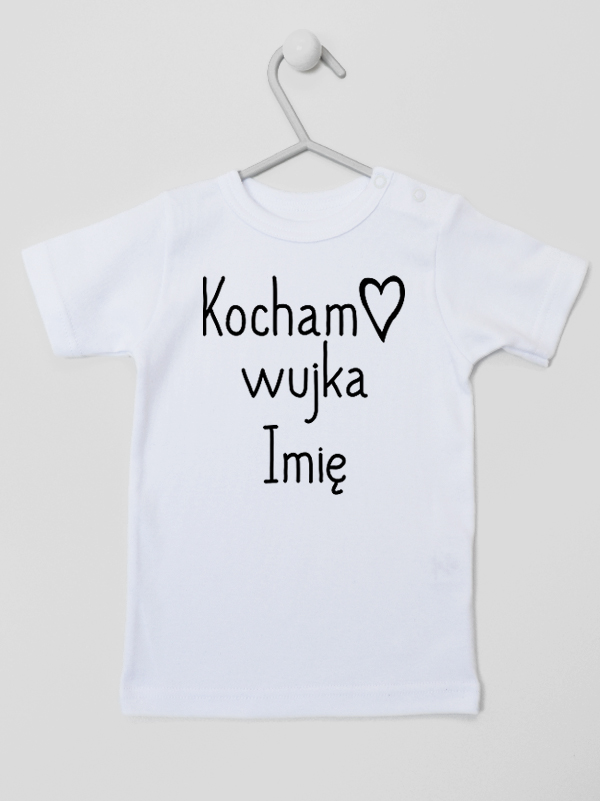 Fajna koszulka z nadrukiem Kocham wujka z jego imieniem i sercem to idealny sposób na wyrażenie miłości maluszka do wujka. Indywidualny nadruk z imieniem wujka i sercem sprawia, że każde ubranko jest jedyne w swoim rodzaju.
