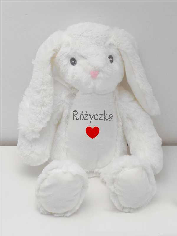 Maskotka Króliczek Biały z Imieniem Różyczka oraz Serduszkiem