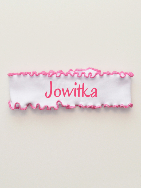 Urocza opaska dla niemowląt z napisem „z Imieniem Jowitka”.